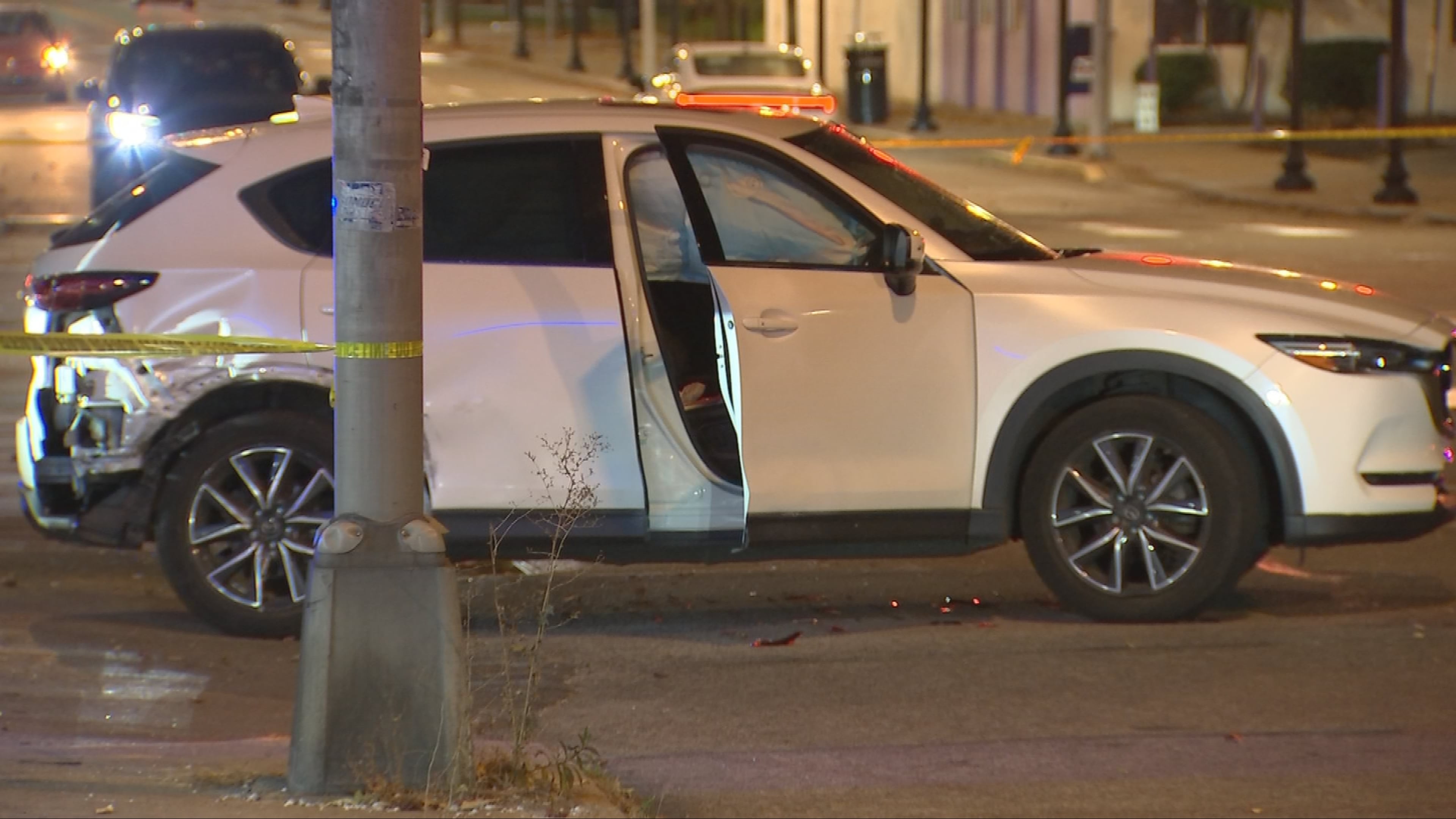 Channel 11 crews on scene saw the intersection blocked off. A civilian vehicle could be seen with damage to the rear, as well as its front windshield.